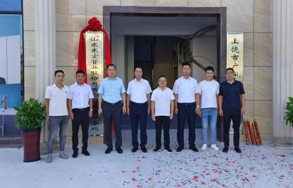 近日,公司江西省上饶办事处正式成立。东宏集团党委副书记、东宏管业副总裁刘彬,安徽市场总经理林丙海,上饶市广宇实业有限公司总经理周强云等人参加办事处揭牌仪式。