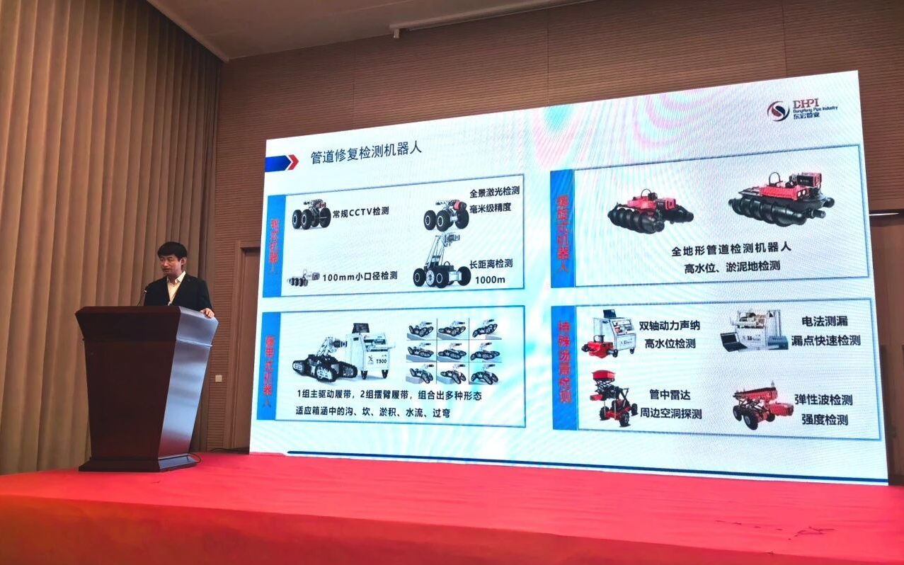 在展会同期举办的水利创新发展交流会上,东宏股份研发中心技术总监张亮代表公司作《水务管道差异化产品及管道智能终端》主题演讲。他详细阐述了公司在大口径重防腐钢管、管道智能终端、管道修复检测机器人等方面的技术优势和落地成果,获得了与会专家的广泛关注与高度认可。